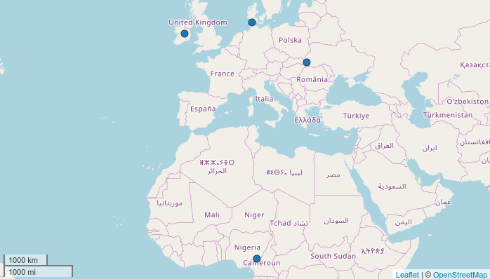 map.feature(languages = c("Irish", "Danish", "Rusyn", "Bebe"))