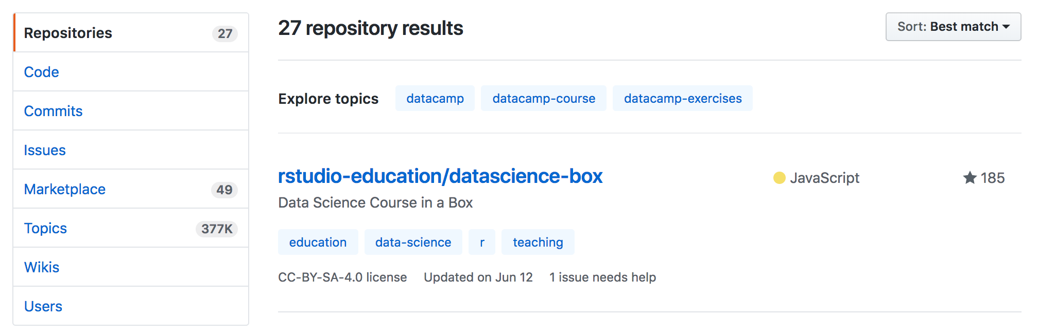 . (Sample search)Even if they are made open, the problem remains of how to discover their availability; current methods tend to be time-dependent like sharing links in tweets or posts on community forums. If stored in a GitHub repository with the teaching