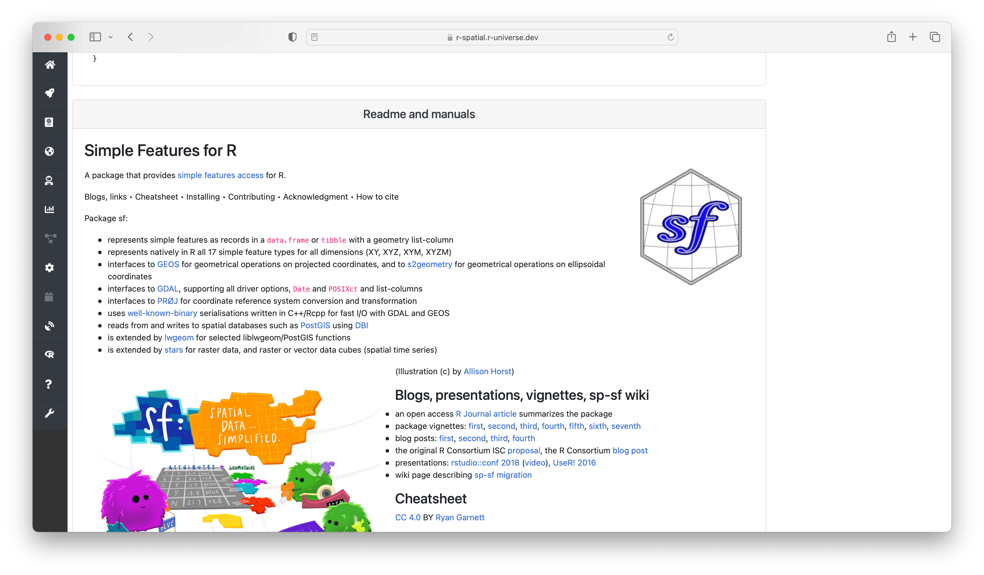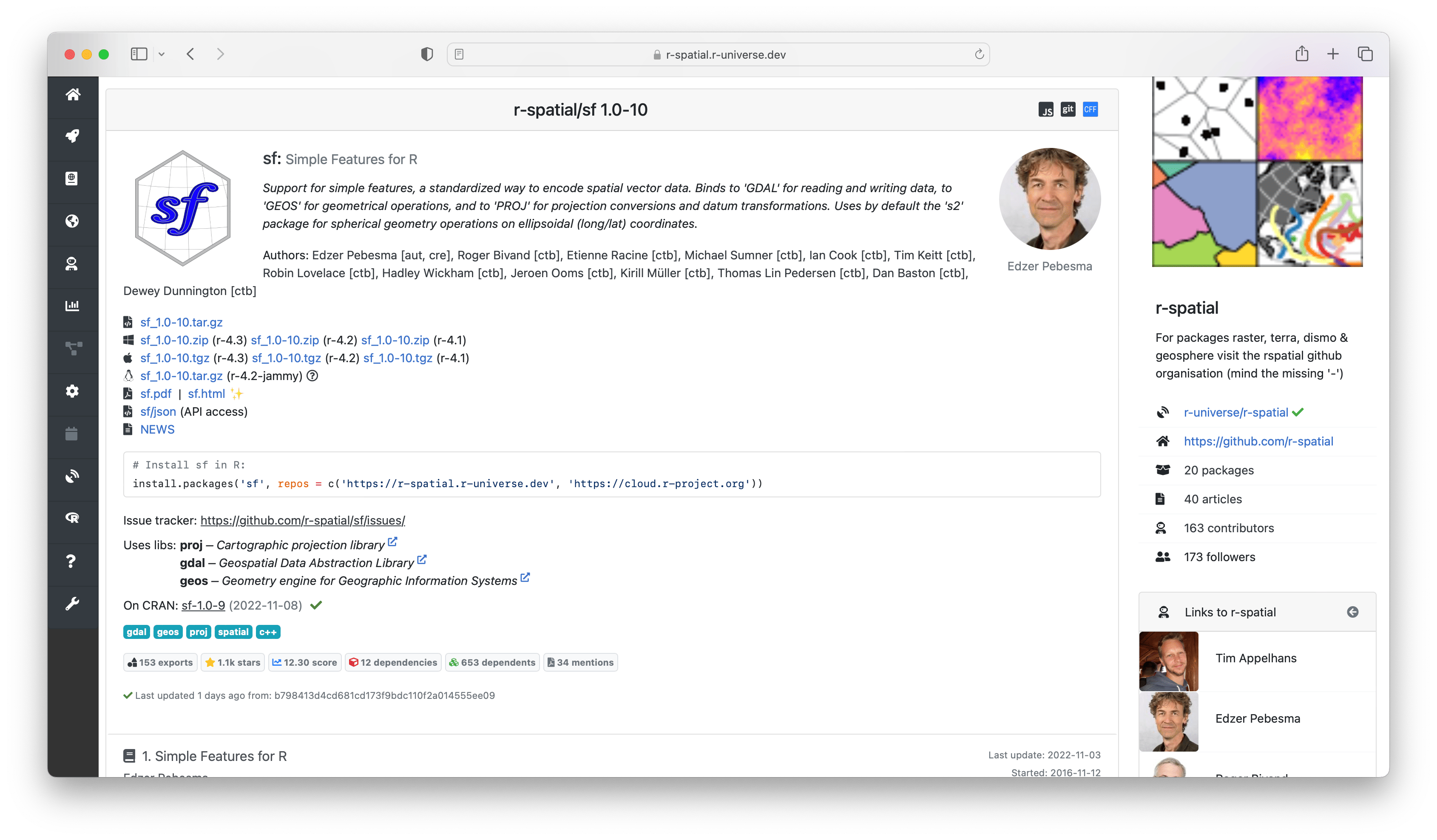 for example https://r-spatial.r-universe.dev/sf below.